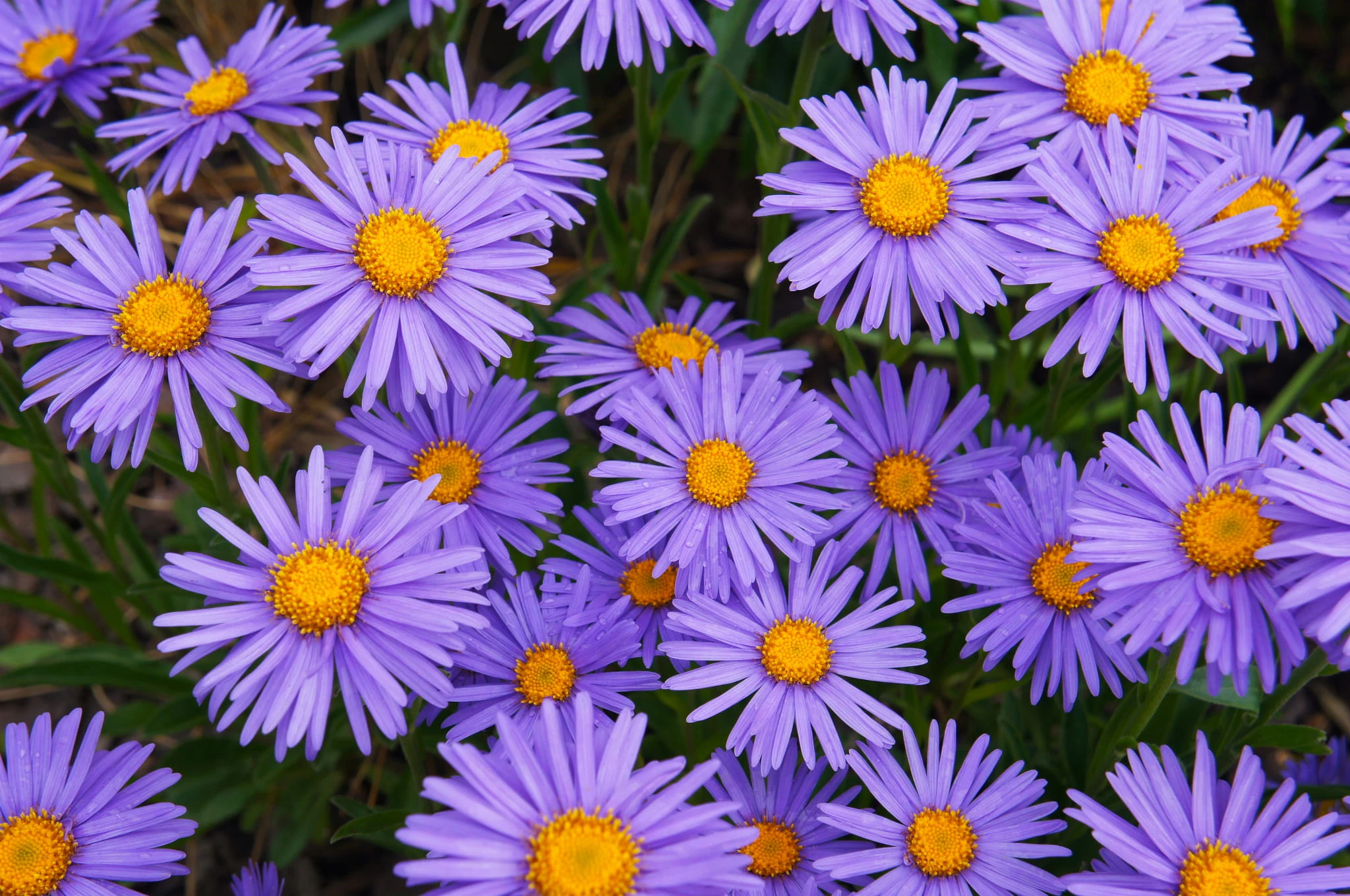 - Grupowe nasadzenia: Aster wygląda szczególnie efektownie, gdy jest sadzony w grupach, tworząc barwne plamy na tle zieleni.