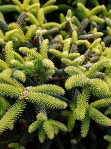 Taxus baccata, Abies nordmanniana, Picea abies ‘Nidiformis’. -