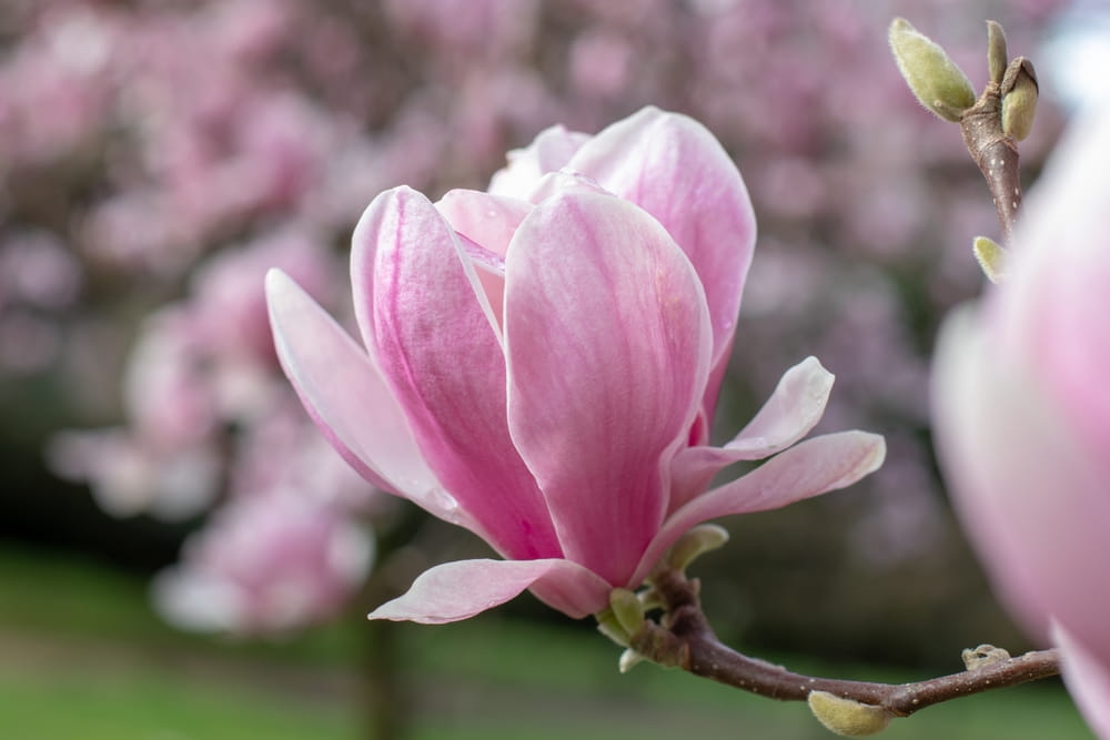Spektakularny efekt wiosenny: ogromne, różowe kwiaty pojawiają się zanim rozwiną się liście — robią ogromne wrażenie.